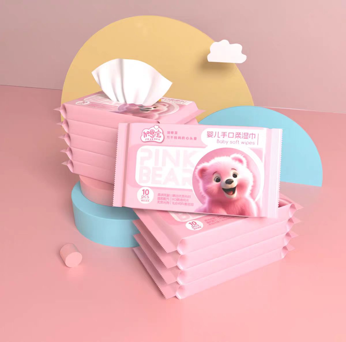 粉红熊湿巾一包